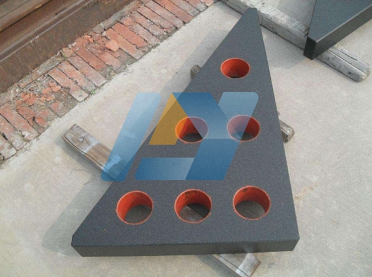 花崗巖(大理石)直角尺適合于垂直度的檢測。平面精度標準GB6092-85,垂直度標準GB6092-85。為減少重量及方便加工而增加了減重孔。側面的公差是0.02。